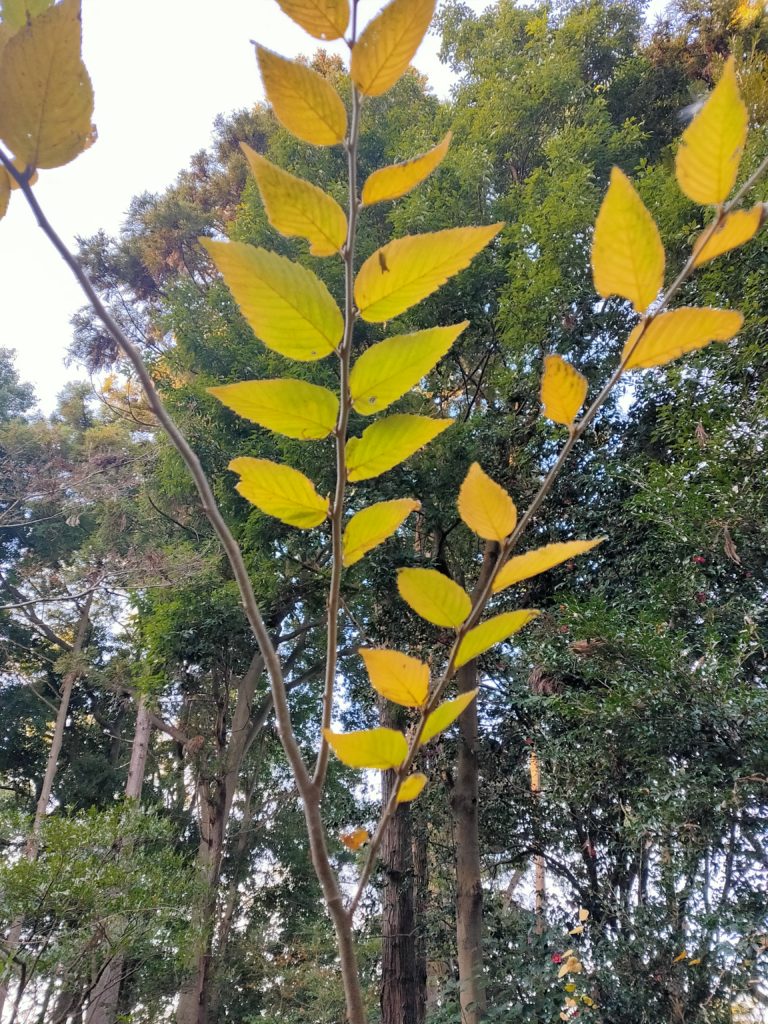 幼木を見分けるのは難しい。天神山では、ムクノキとイヌシデの実生、幼木がたくさんあるが、葉の落ちる季節になると識別が難しくなる。イヌシデは枝に毛が生えているが、あまりそれがはっきりしない枝もある。葉縁はどちらも鋸歯で、ムクノキは割と単純だが、イヌシデは重鋸歯だし、葉脈はイヌシデの方がピッチが狭い。そうと分かっていながらも、実物を見るとまた、わかんなくなってしまうのだ。
