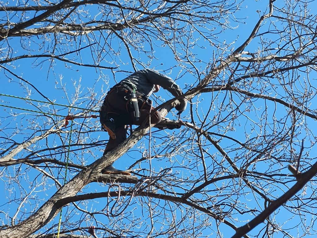このところ、専門学校のインターンを受け容れ、連日、一緒に山の手入れを行っている。今日は、今期、あたらしく樹木医になった3年前のインターンN氏。その時に、リギング剪定をやったのがきっかけで木に登るようになったとのこと。造園会社に勤め、腕を上げている。今日は樹上作業の主要な部分をやってくれて、とても助かっている。
