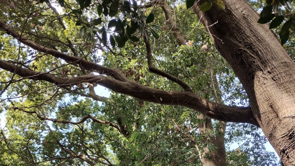 枯枝にも役割があるはず。役割とは、いろいろな生物の餌となり住処となり生物多様性に貢献することだ。より複雑に生物同士がやりとりし、重層的な環境をつくることが理想なのである。高いところから落ちてくる枯枝にはキノコがよく付いている。ヒイロタケやキクラゲなどが多い。キノコには虫が寄ってくる。小さな虫から大きな虫まで。枯枝は甲虫たちの揺り籠で、カミキリムシやタマムシなどの幼虫はそこで育つ。鳥はその虫を狙う。