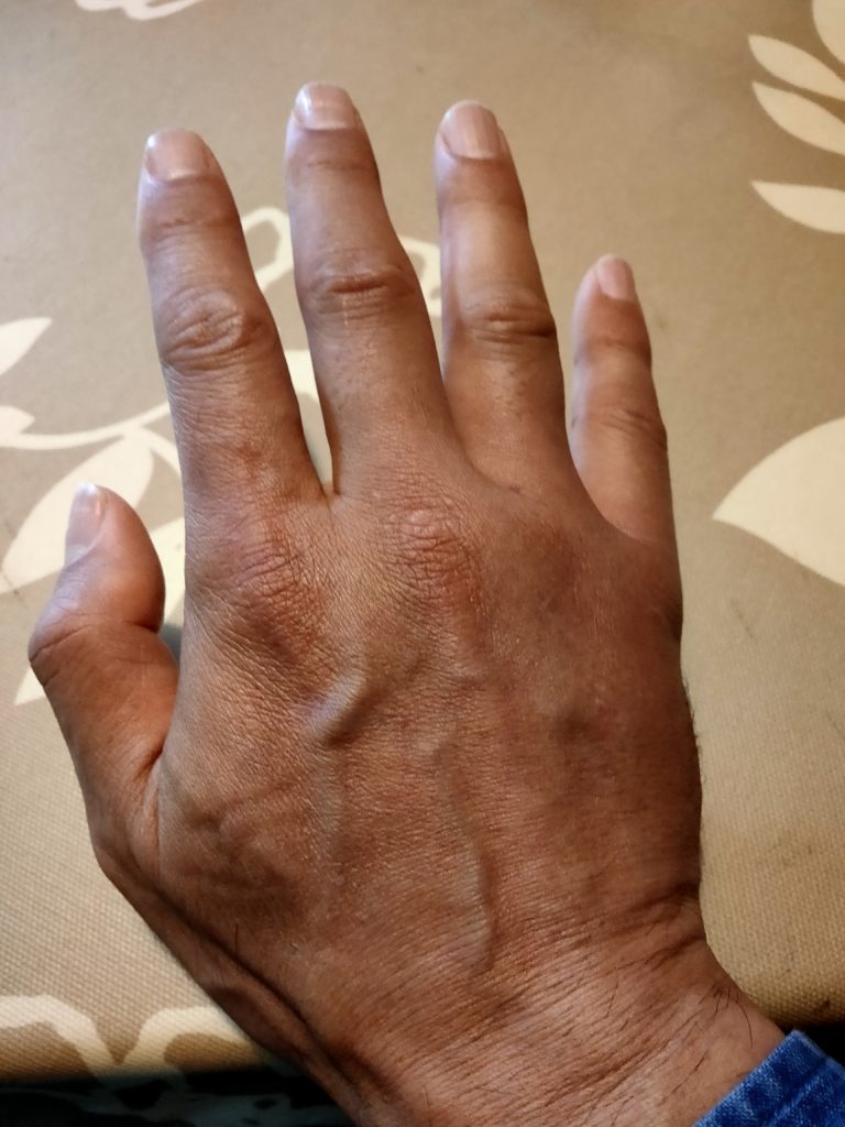 刺された場所は、薬指の付け根。さほど腫れていない。痛いと思ってすぐに払ったのが良かったのか、あるいは手袋が少し守ってくれたのかもしれない。刺されてすぐに処置が必要と思い何をすれば良いのか、確認すると