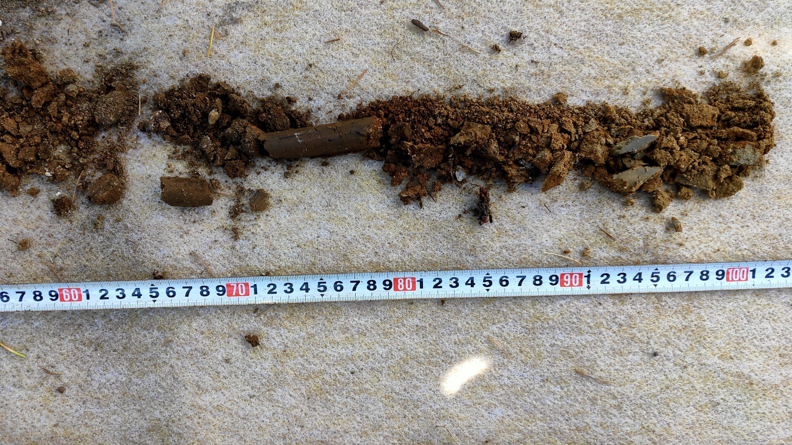 これらで、だいたい土の様子がわかります。土の透水性は良いが、砂質できわめて固く締め固まった土壌でした。これでは、いくら乾燥に強く、貧栄養でも育つヒマラヤスギでも枯れて当然なのかもしれません。土を柔らかくするのは第一ですが、暑く乾燥するこの夏を乗り切れるかどうか、樹木にとっても、我々樹木医にとっても正念場です。