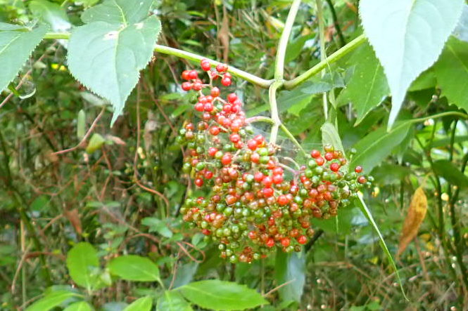 続いてはニワトコの実。赤く色付いている。鳥があちこちに運んでくれる。