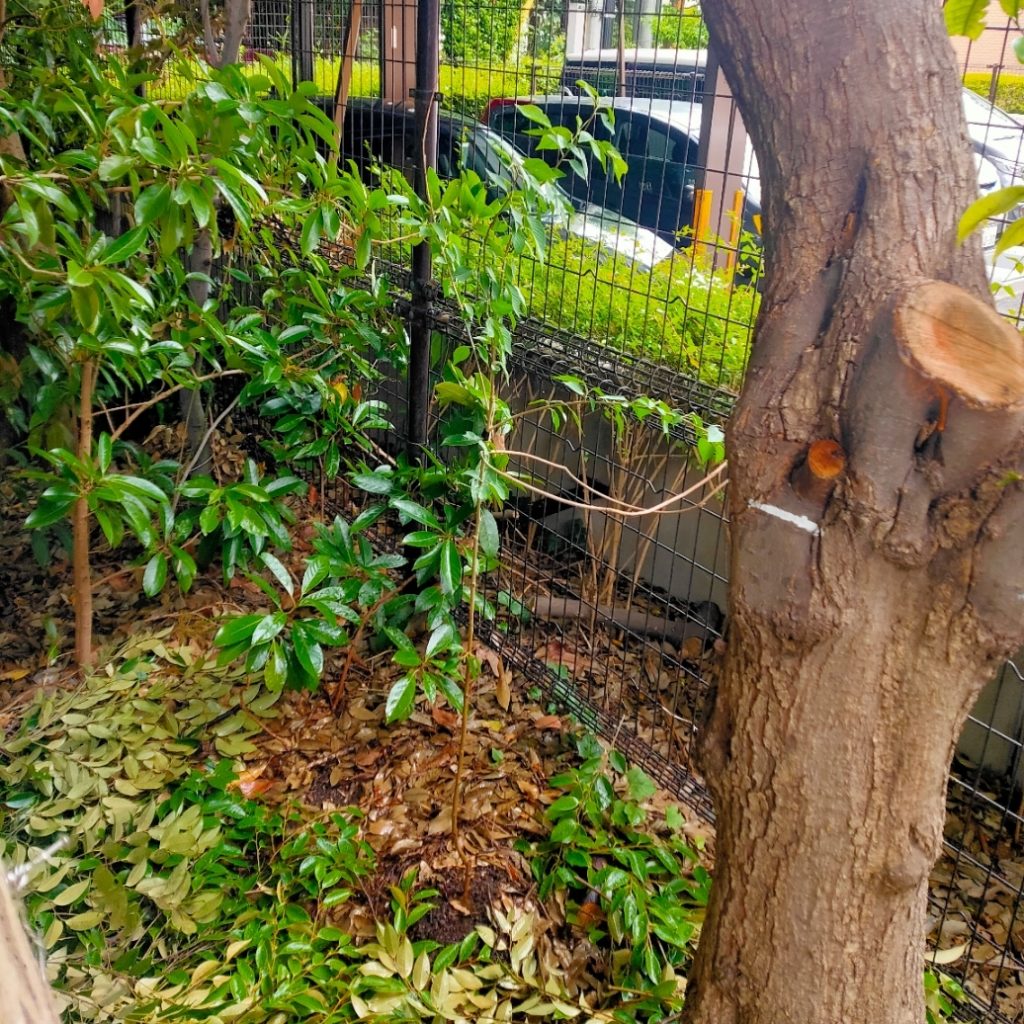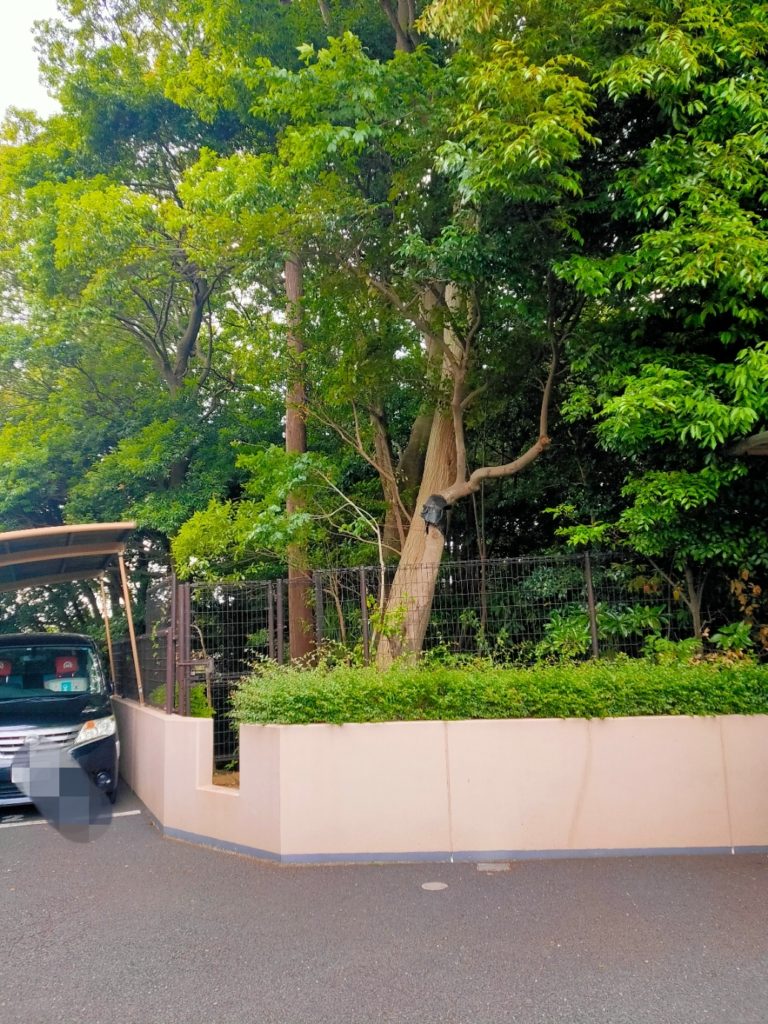 剪定部には、殺菌剤を塗ったうえで、黒いシートで保護した。これは紫外線から樹皮を守るため。しばらくは、付けておくつもりだ。